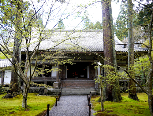 宸殿 大正15年(1926)、宮中の行事であった御懺法講の儀式を行うために造られたもので、御所の紫宸殿を模した造りになっています。かつて三千院の門主が導師を勤めた縁から、今は三千院に受け継がれています。