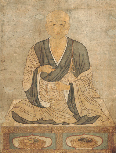 紙本着色 88.2×42.5 恵心僧都源信(942-1017)は大和国当麻郷の人。 九歳で比叡山に登り、良源に師事し、顕密二教を究め、学匠(がくしょう)として高名であったが、世俗の名利を捨て、横川に隠棲した。 永観二年(984)から翌年にかけ『往生要集』を執筆し、天台浄土教を大成。のちの浄土信仰に大きな影響を与えた。 恵心僧都の肖像画は、宋に贈られ、かの地に建てられた廟に安置されたと伝わる。本像もそれと同系の一幅である。 -