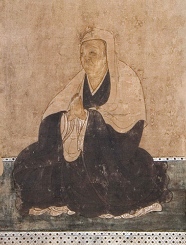 紙本着色 88.7×43.7 願西尼(がんせいに)ともいい、『往生要集』の著者、恵心僧都源信の姉とも妹とも伝える。大和国当麻郷の安養寺に住す。 本像は、恵心僧都像とともに三千院に伝えられた一幅で、ふくよかな初老の尼が合掌する姿に描かれる。 -