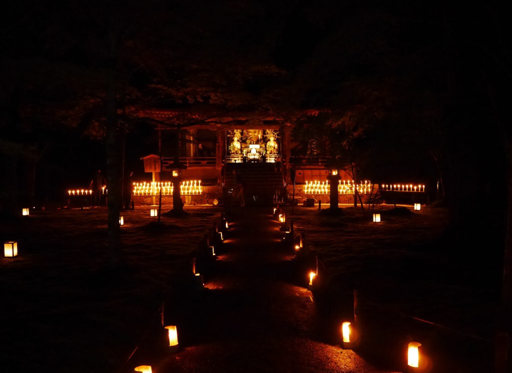 先祖の霊を迎え入れ、世界平和や諸願成就を祈る約1,000本のろうそくが境内を美しく照らします。